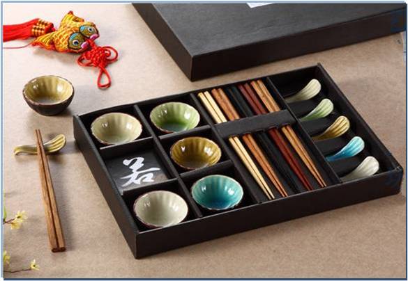 材质:瓷器,筷子为木质